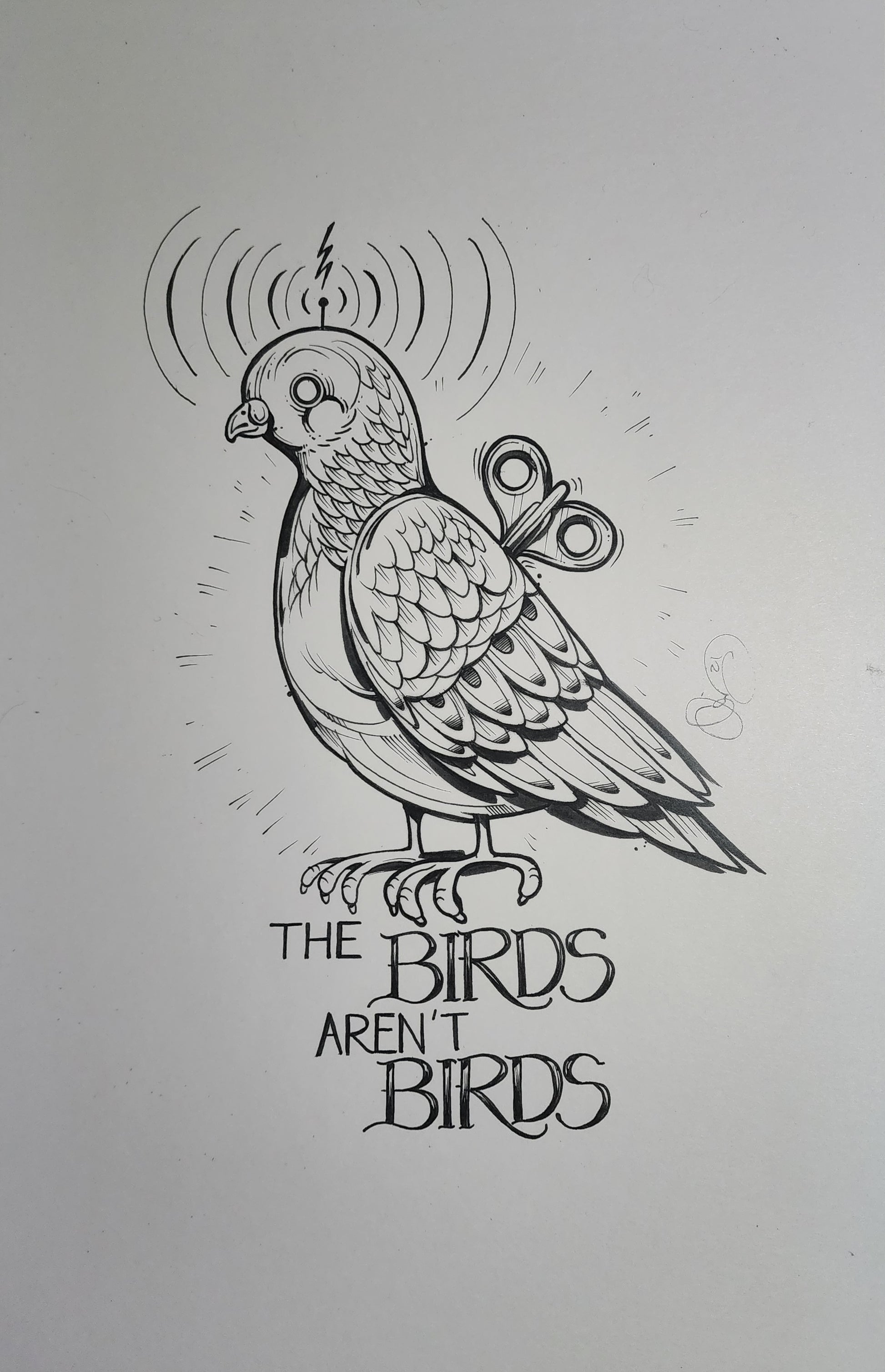 A pigeon communicating with the government via it's antenna.